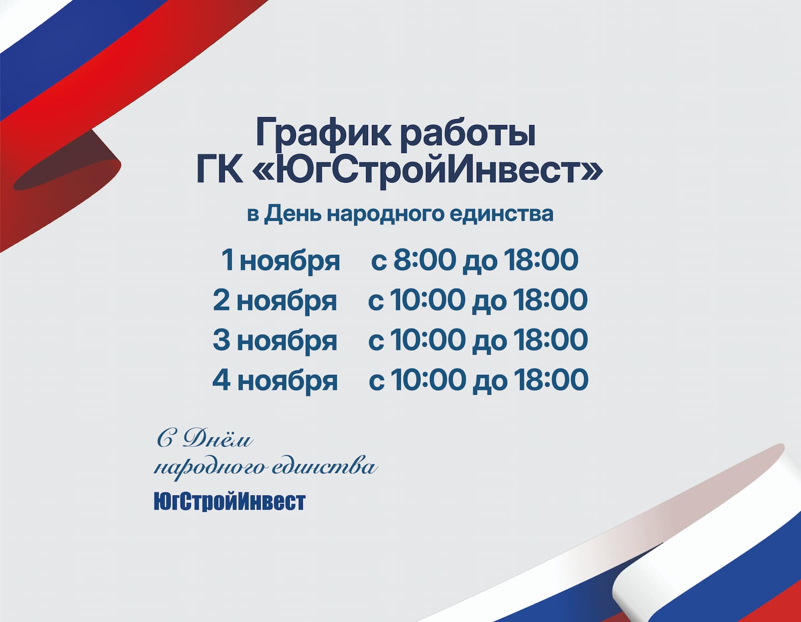 График работы ГК “ЮгСтройИнвест” в праздничные дни