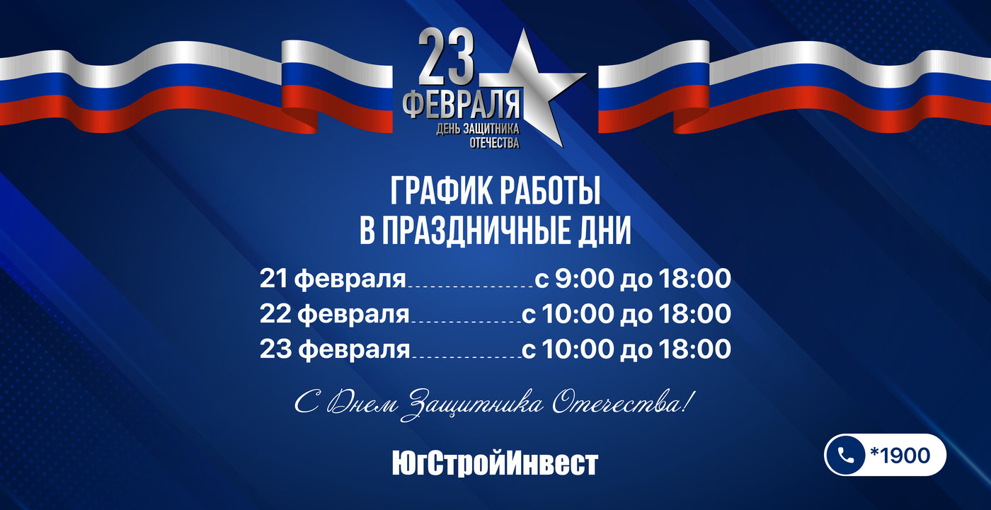 График работы офисов продаж ГК «ЮгСтройИнвест» в Ростове-на-Дону на 23 февраля