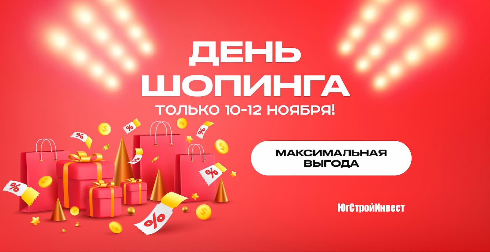 Группа компаний ЮгСтройИнвест запускает специальные предложения ко Дню шоппинга — только с 10 по 12 ноября для покупателей квартир в Ростове-на-Дону действуют особые условия.