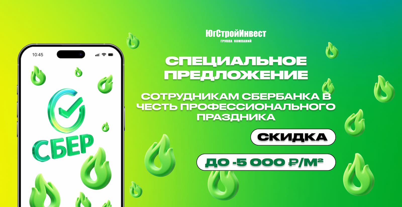ЮгСтройИнвест дарит специальные скидки до 5000 руб. за кв. метр работникам Сбербанка